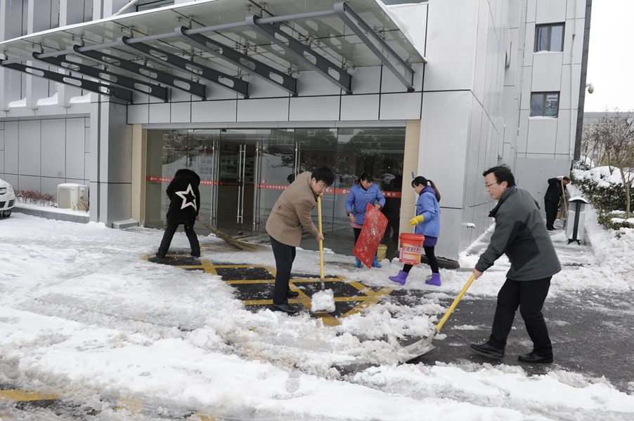 農(nóng)商行干部職工清掃積雪 圖片來源:全椒縣農(nóng)商行