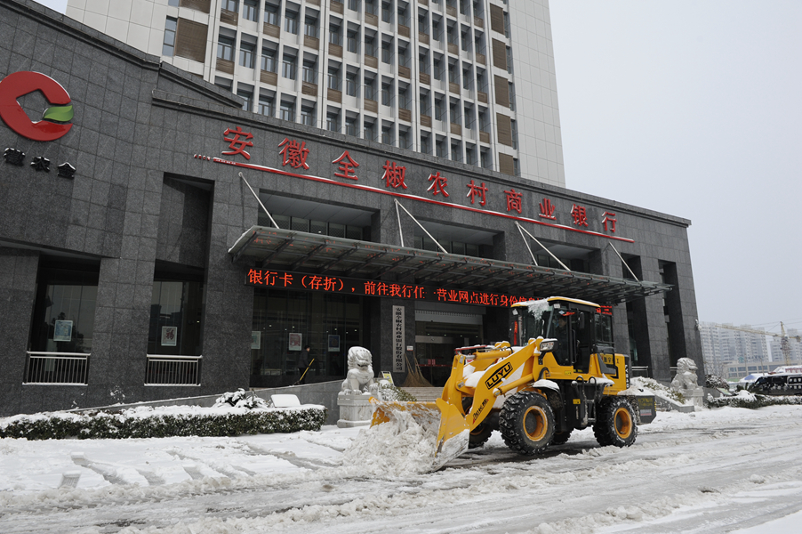 鏟土機在銀行門口進行鏟雪 圖片來源:全椒縣農(nóng)商行