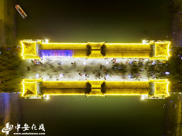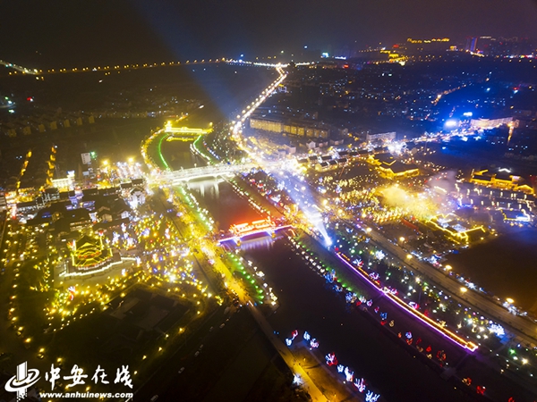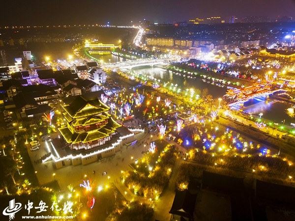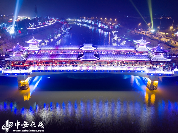 3月2日是傳統(tǒng)的“正月十五”元宵節(jié),航拍視角下的全椒太平橋燈光璀璨、景色迷人。一年一度的安徽省非物質(zhì)文化遺產(chǎn)——“正月十六走太平”系列活動(dòng)將在安徽全椒濃情上演,全椒縣太平文化廣場(chǎng)布置七彩瀑布、河岸燈光秀等,太平橋畔燈光璀璨,吸引眾多市民觀賞。(攝影:許夢(mèng)宇)
