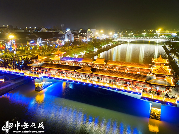 航拍安徽全椒:正月十五 太平橋上鬧新春