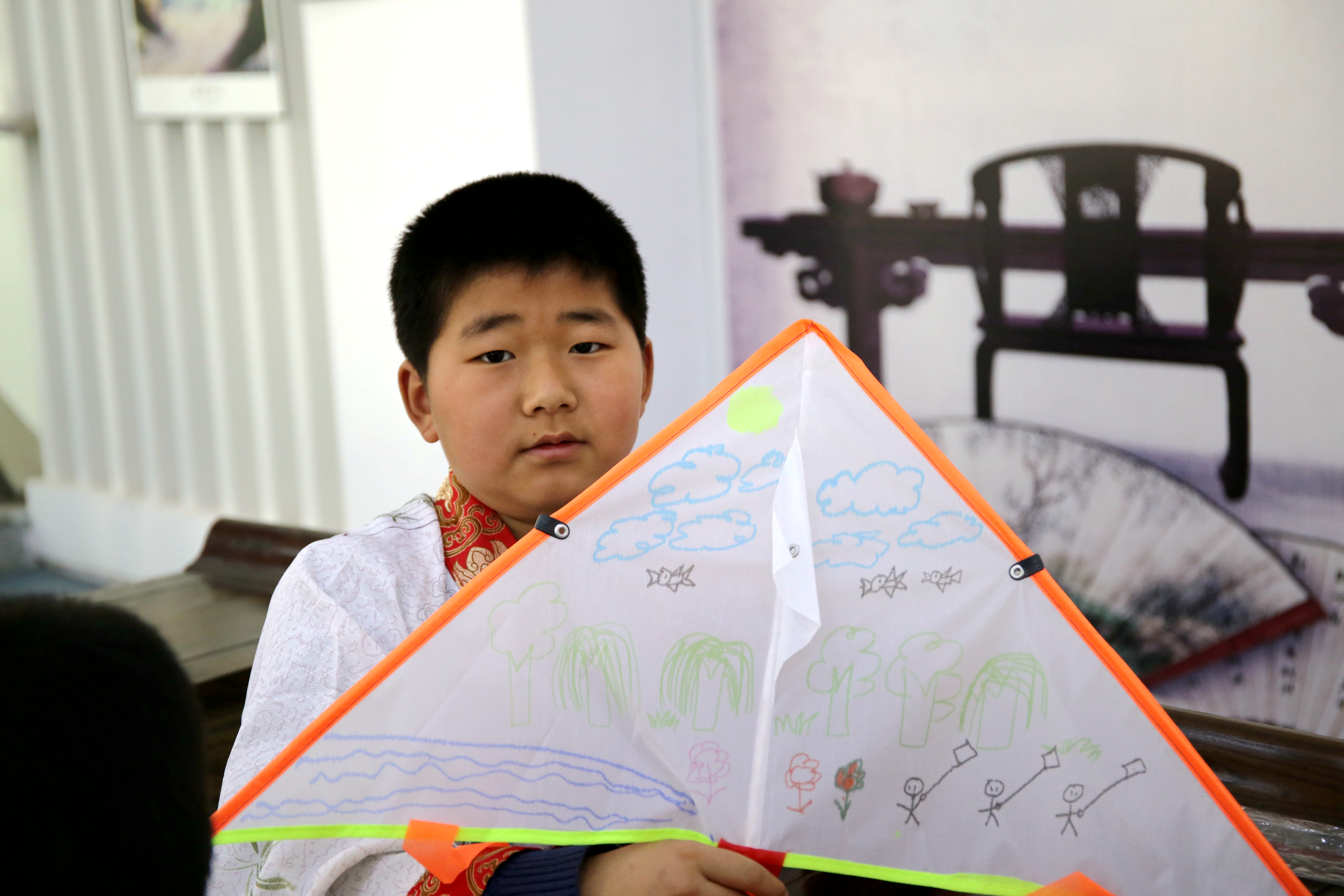 展示自己的DIY的風(fēng)箏 圖片來源:全椒縣圖書館