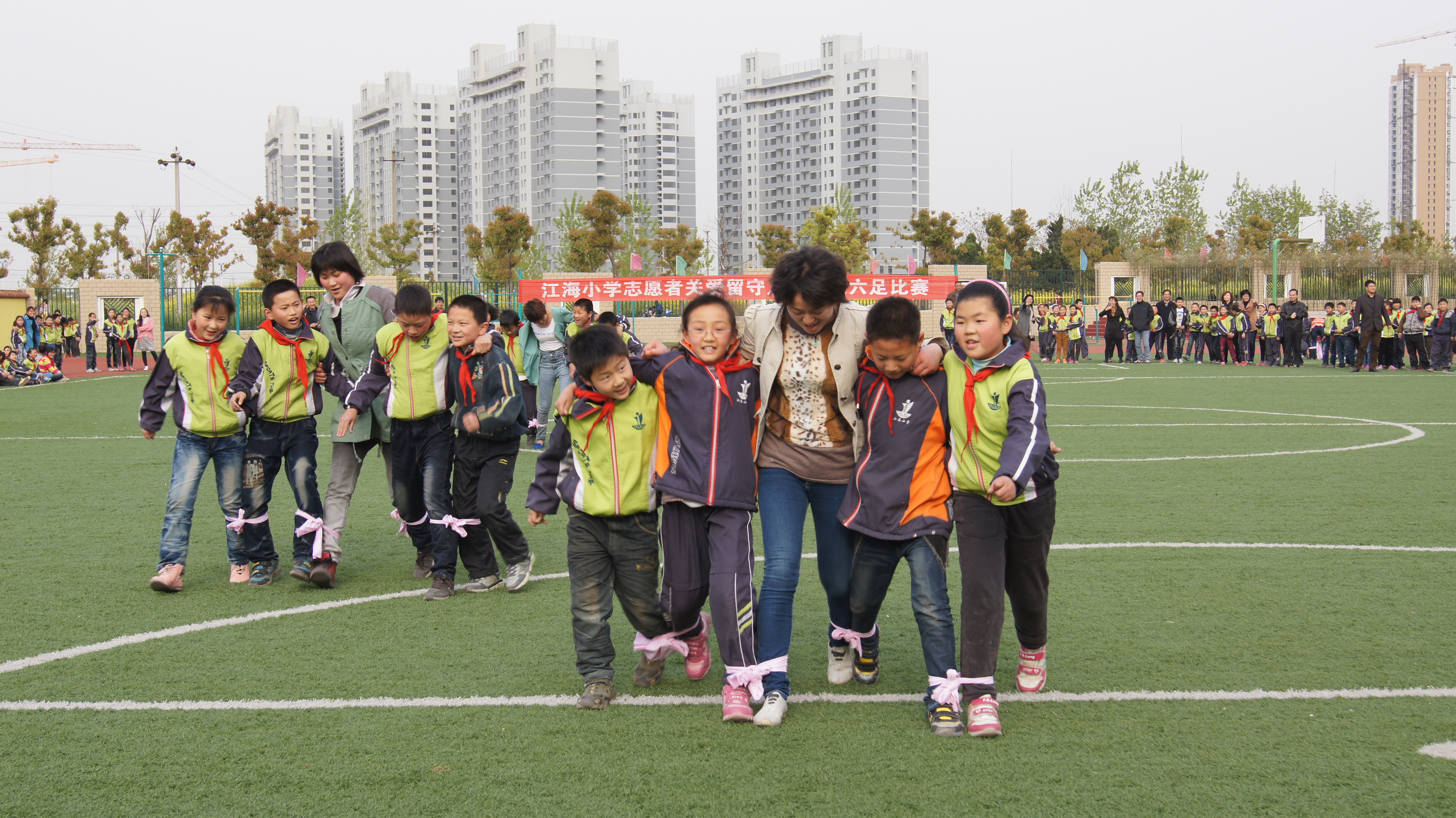 學(xué)校舉行志愿者關(guān)愛(ài)留守兒童五人六足比賽 圖片來(lái)源:全椒縣文明網(wǎng)