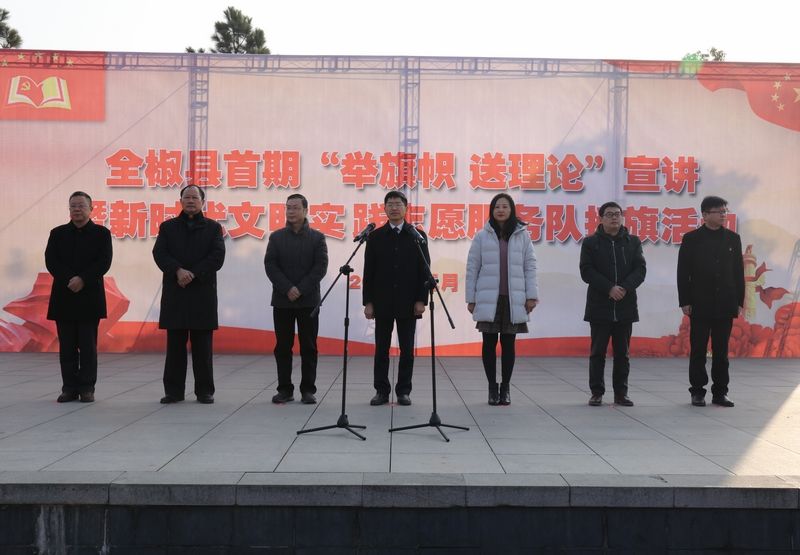 1月17日上午,全椒縣在太平文化廣場(chǎng)舉行首期“舉旗幟 送理論”宣講暨新時(shí)代文明實(shí)踐志愿服務(wù)隊(duì)授旗活動(dòng)。省委講師團(tuán)副團(tuán)長(zhǎng)肖文婷,市政協(xié)副主席、縣委書(shū)記王成山,市委宣傳部副部長(zhǎng)于曉波,市委講師團(tuán)團(tuán)長(zhǎng)林衛(wèi)東,縣領(lǐng)導(dǎo)楊勇、史宇、金義平、王慶、闞緒瑞、童志全、曹勝華、尚云、陳勁松、姚本山、宇慶忠、姜志山,各鎮(zhèn)、縣直各單位主要負(fù)責(zé)人和分管負(fù)責(zé)人,以及全縣新時(shí)代文明實(shí)踐志愿服務(wù)隊(duì)的志愿者代表等參加活動(dòng)。