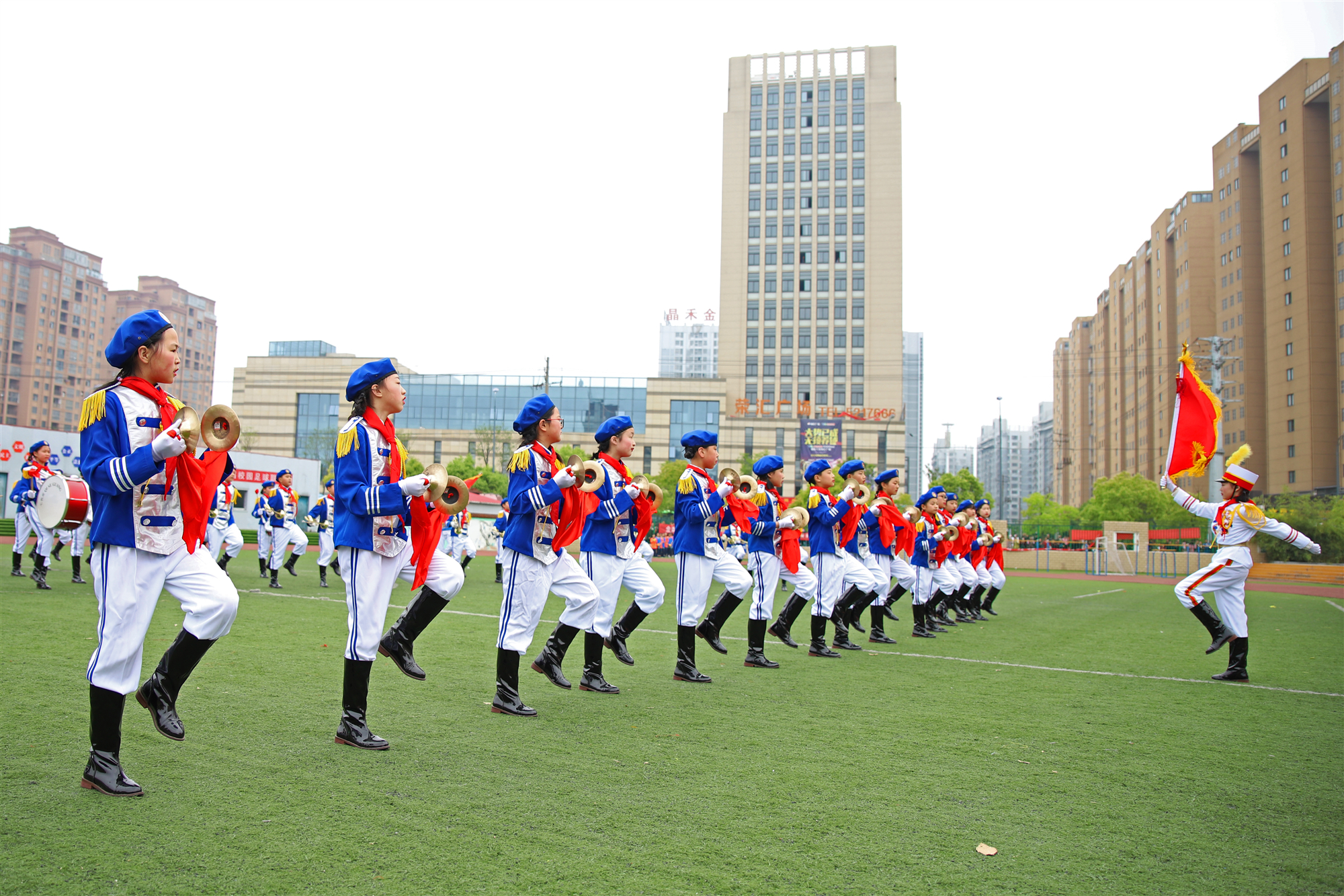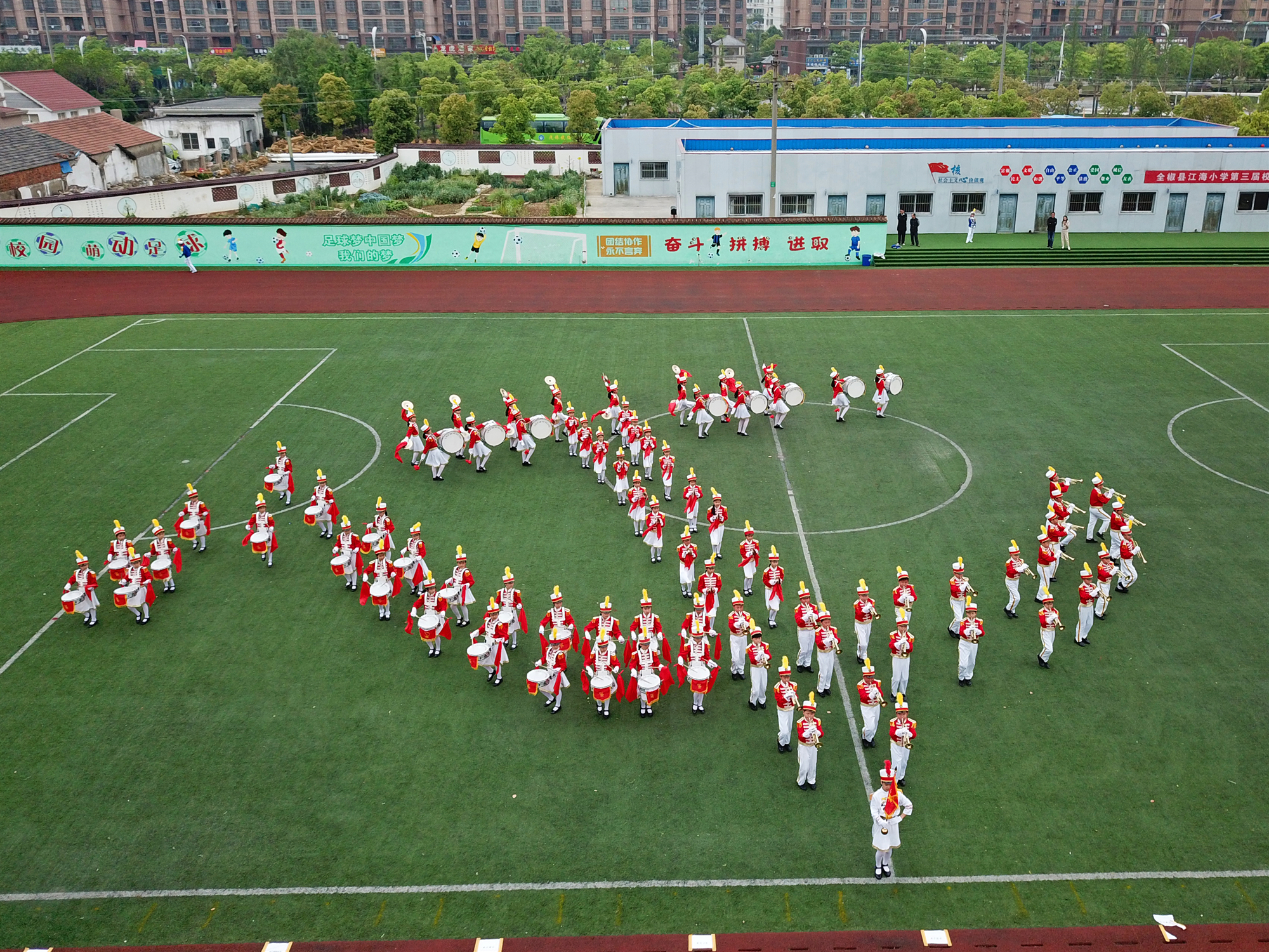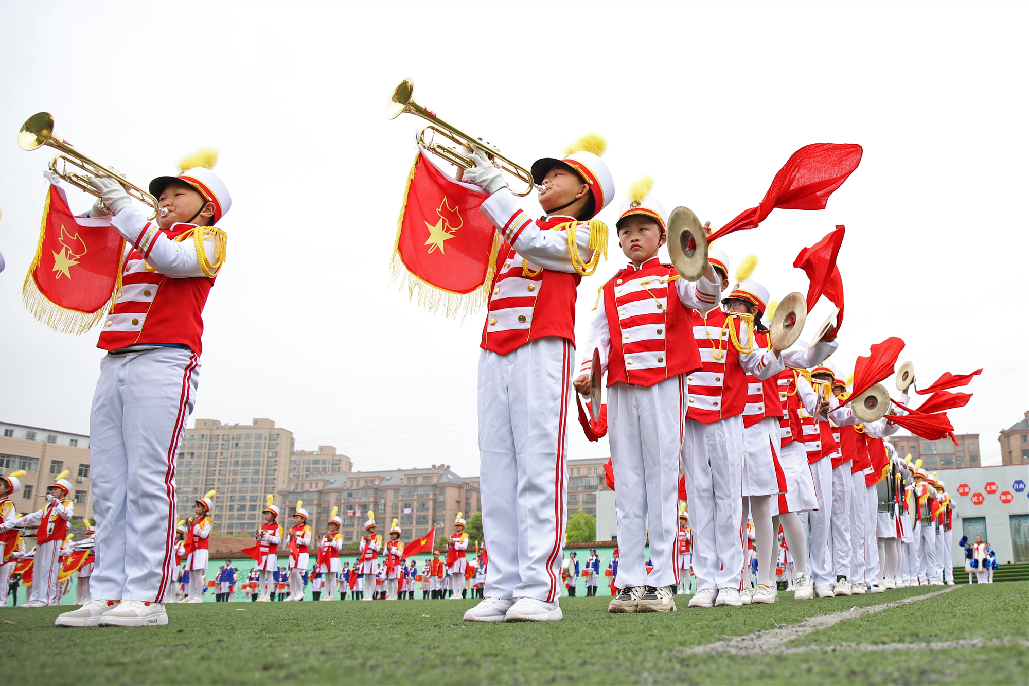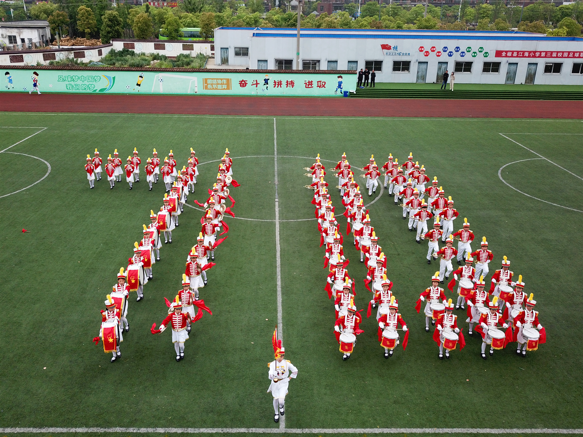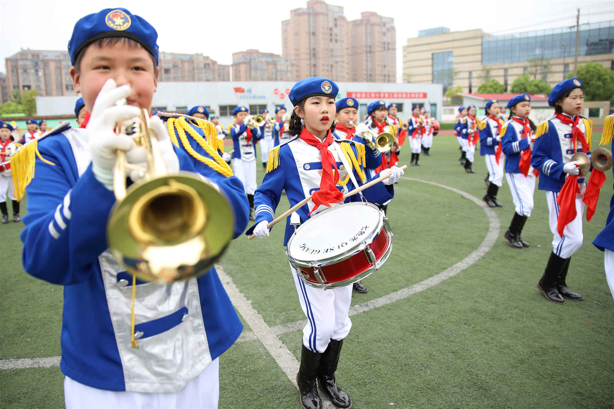 圖為該縣少先隊員在鼓號大賽上的精彩表現
