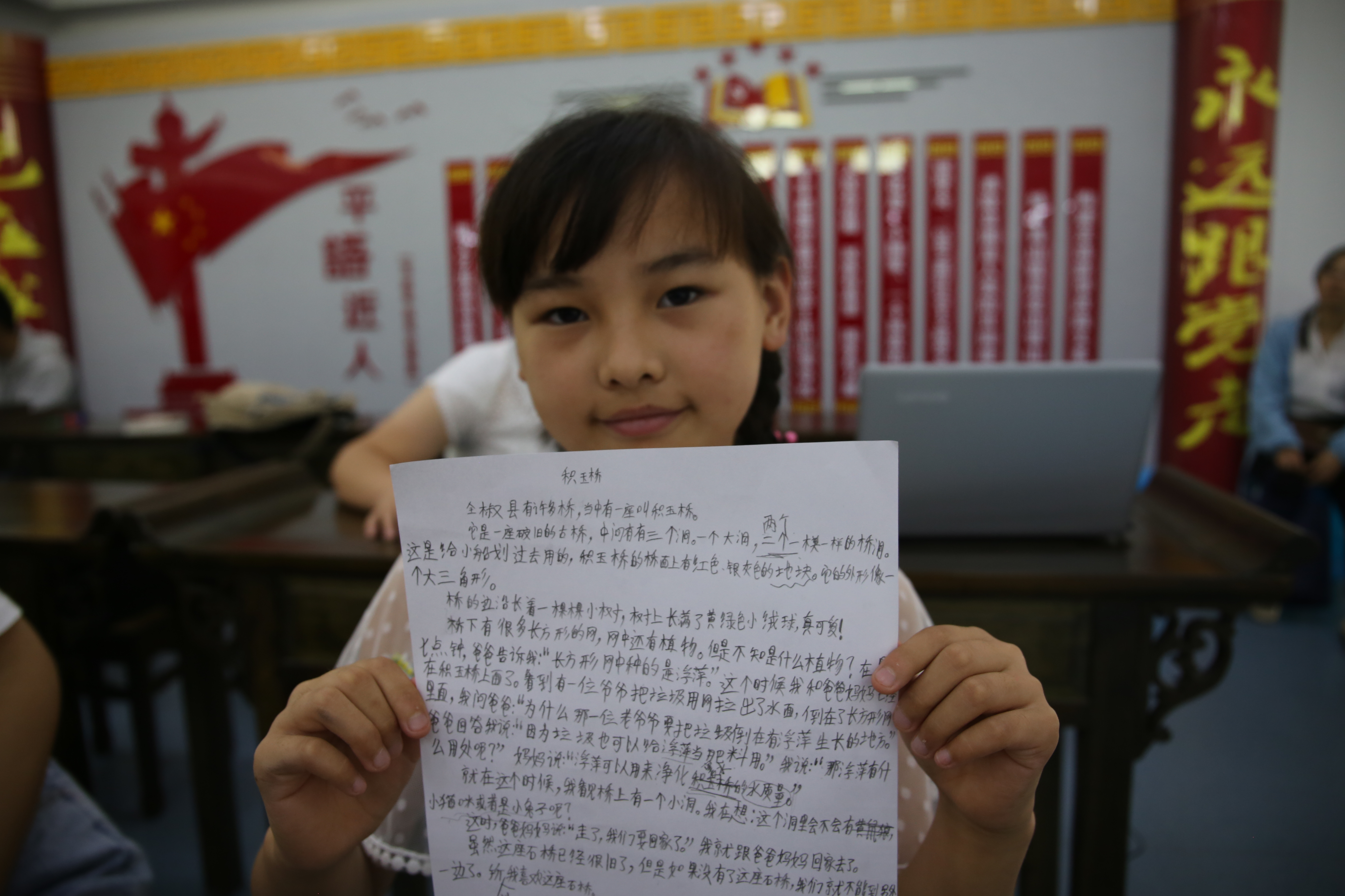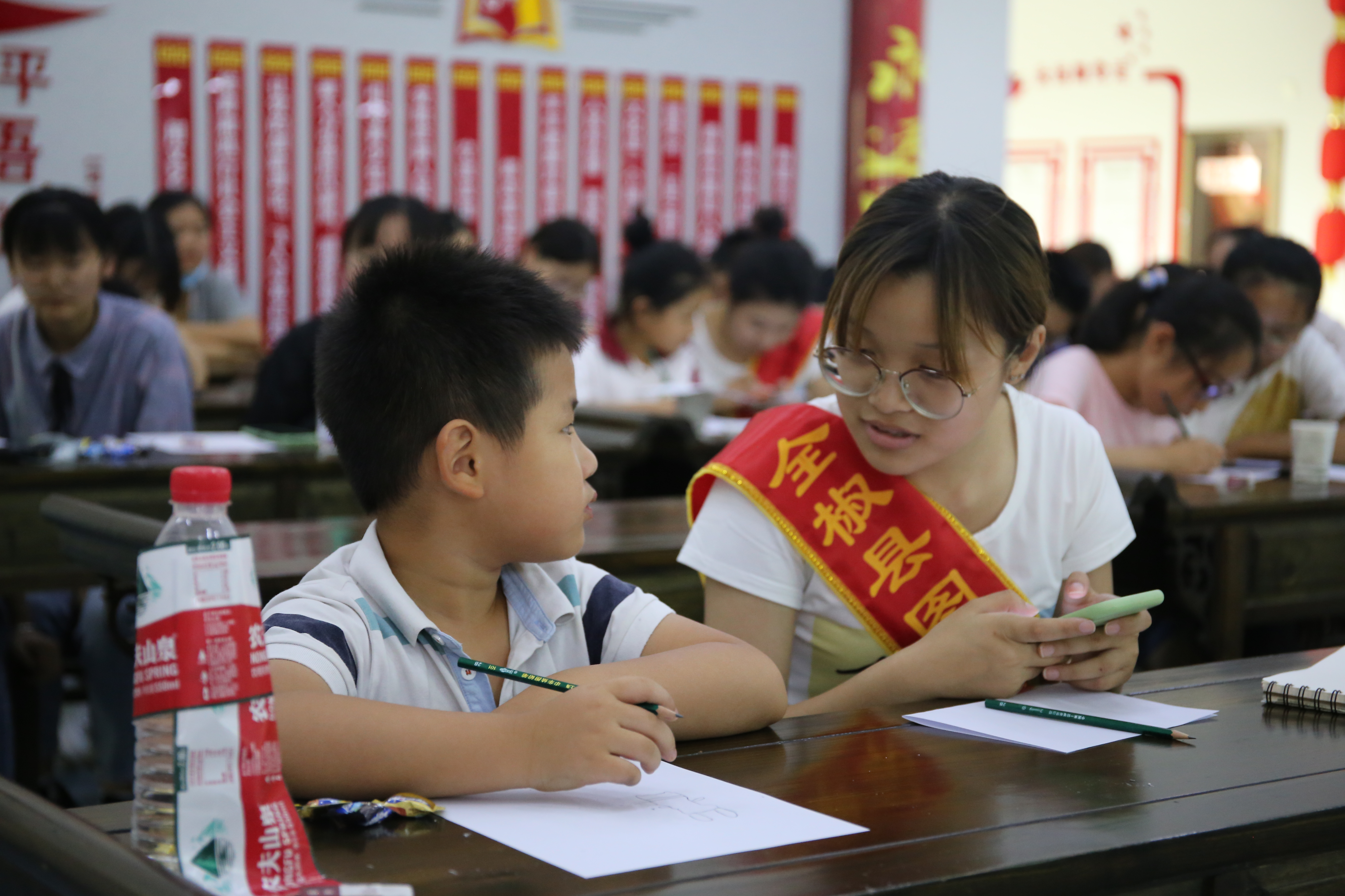 志愿者們用啟發(fā)式語言和畫面,幫助孩子們重溫全椒古橋歷史文化,鼓勵孩子們用自己的語言表達(dá)出來,集成文字寫在紙上。通過志愿者們的輔導(dǎo),讓孩子們明白“傳承歷史文化,講好全椒故事”是新時代全椒少年的光榮使命。