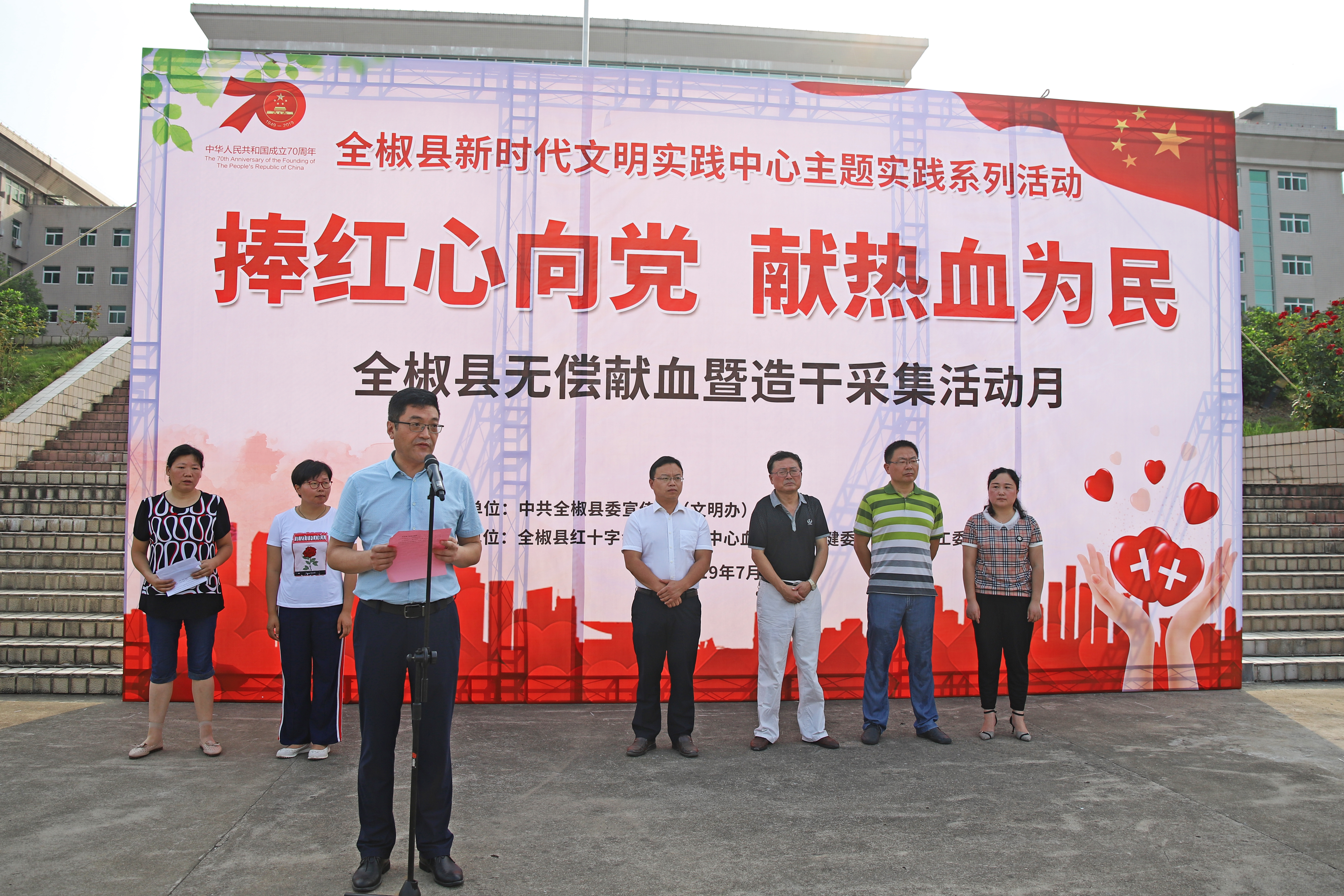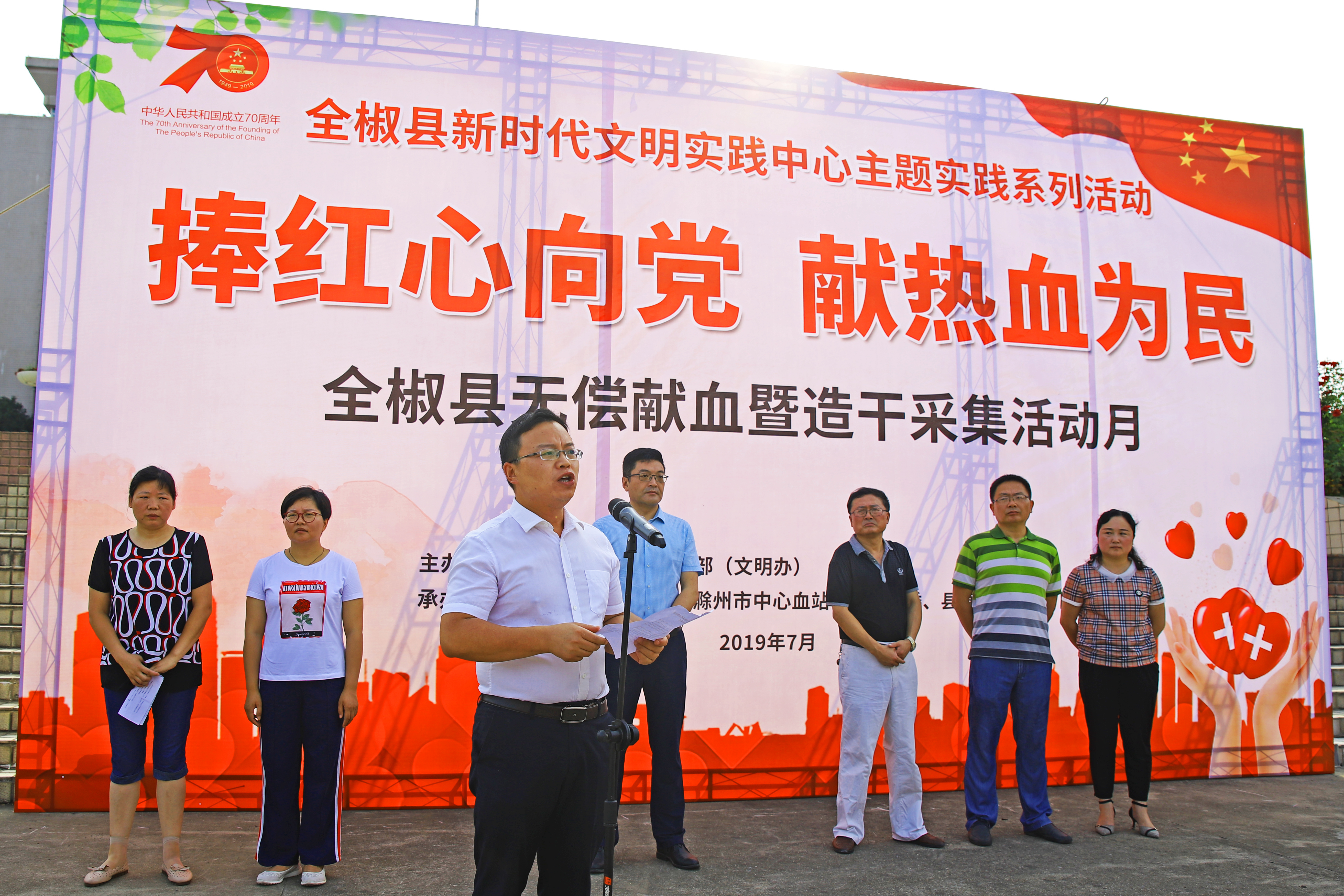 7月25日,全椒縣無(wú)償獻(xiàn)血暨造血干細(xì)胞采集活動(dòng)月啟動(dòng)儀式在縣政府廣場(chǎng)舉行,來(lái)自全縣各鎮(zhèn)、縣直單位、各新時(shí)代文明實(shí)踐志愿服務(wù)隊(duì)、各級(jí)好人、道德模范和大學(xué)生暑期實(shí)踐志愿者近300人參加儀式。副縣長(zhǎng)曹勝華、滁州市中心血站站長(zhǎng)成凱、縣文明辦、紅十字會(huì)及相關(guān)單位負(fù)責(zé)同志出席。
