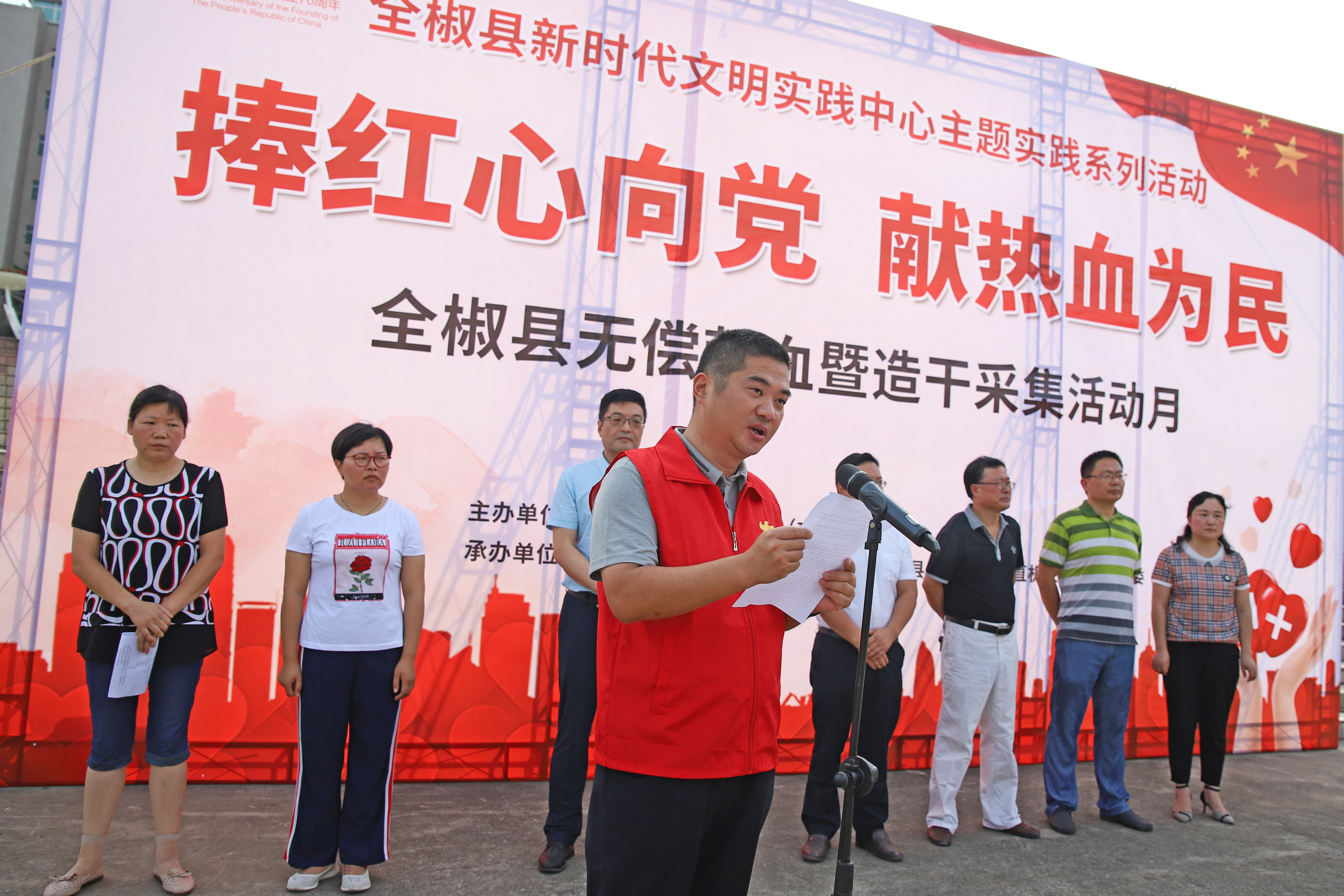 儀式上,成凱站長(zhǎng)對(duì)近年來(lái)全椒縣無(wú)償獻(xiàn)血工作作了肯定,并介紹了全椒縣近幾年來(lái)獻(xiàn)血和用血情況。曹勝華副縣長(zhǎng)對(duì)無(wú)償獻(xiàn)血情況進(jìn)行了點(diǎn)評(píng),對(duì)全椒縣下一步工作提出了要求。活動(dòng)現(xiàn)場(chǎng),無(wú)償獻(xiàn)血、造血干細(xì)胞志愿者柏強(qiáng)宣讀了無(wú)償獻(xiàn)血倡議書。