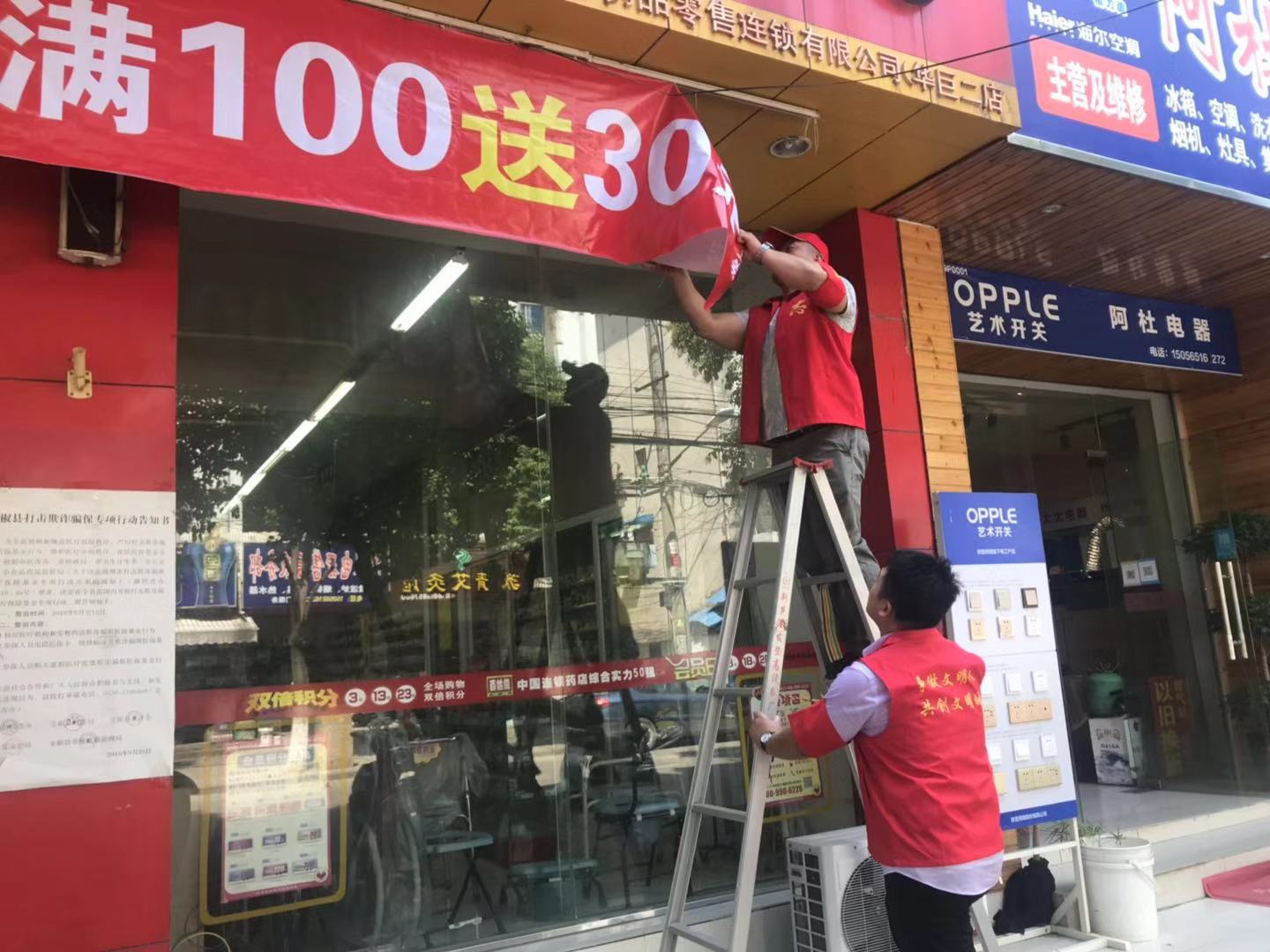 縣委宣傳部督促指導(dǎo)商戶(hù)更換文明創(chuàng)建宣傳標(biāo)語(yǔ)