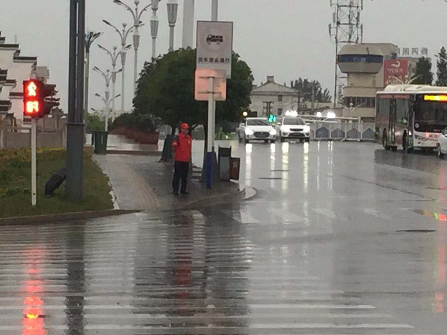 公路分局志愿者冒雨進(jìn)行文明交通勸導(dǎo)