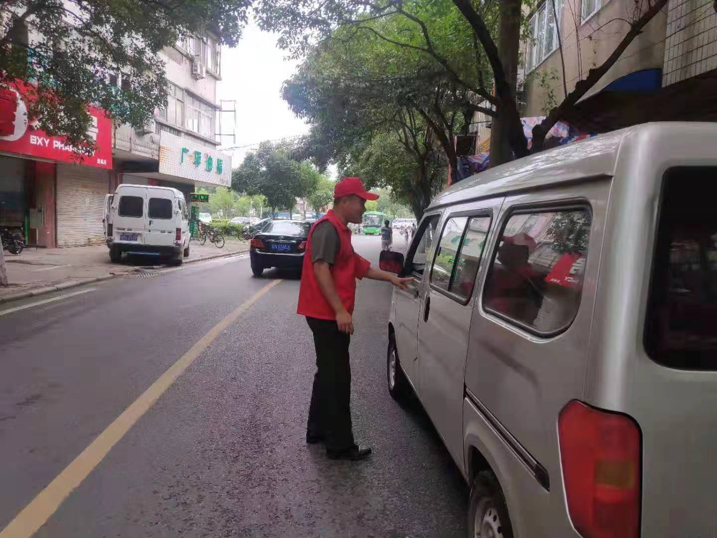 人武部在包保路段對(duì)隨意停放停車(chē)進(jìn)行勸導(dǎo)