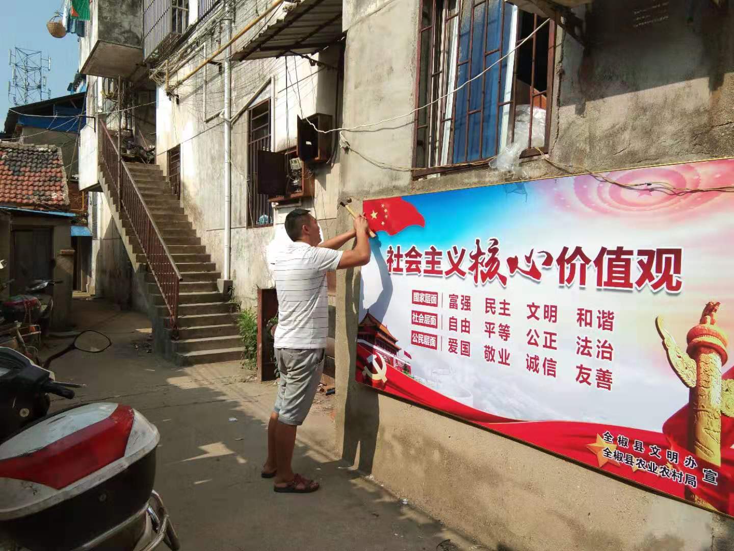 農(nóng)業(yè)農(nóng)村局在包保小區(qū)安裝文明創(chuàng)建公益廣告