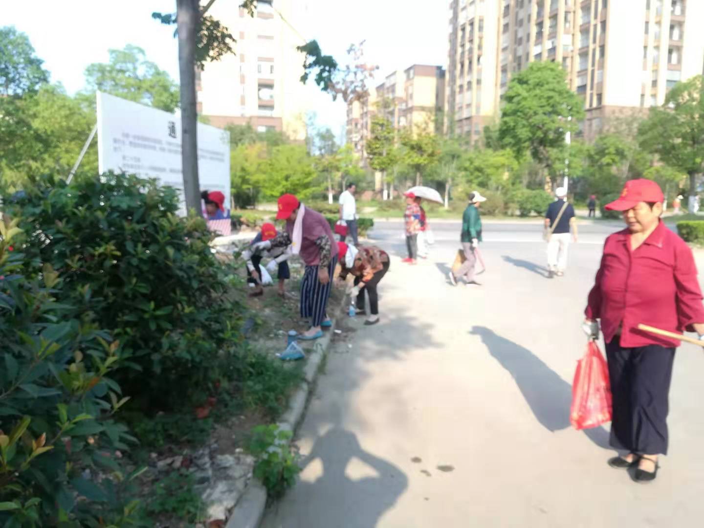 秦崗社區(qū)對(duì)襟襄南路路邊雜草進(jìn)行清理