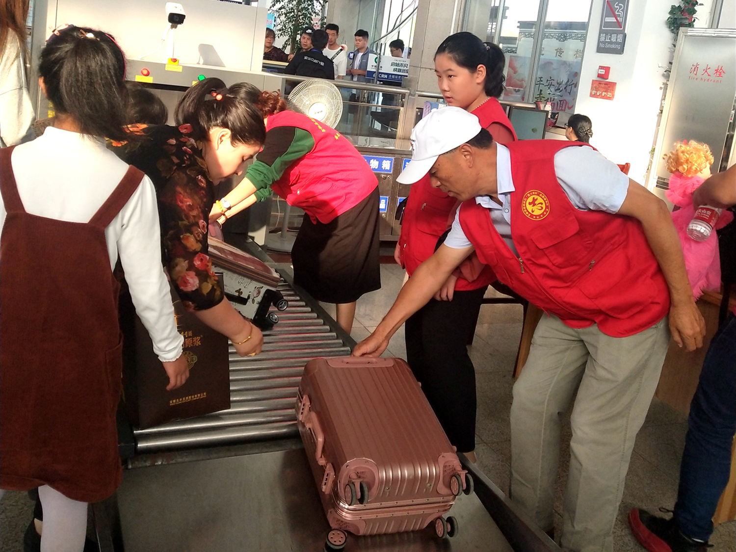 志愿者幫助旅客過(guò)安檢