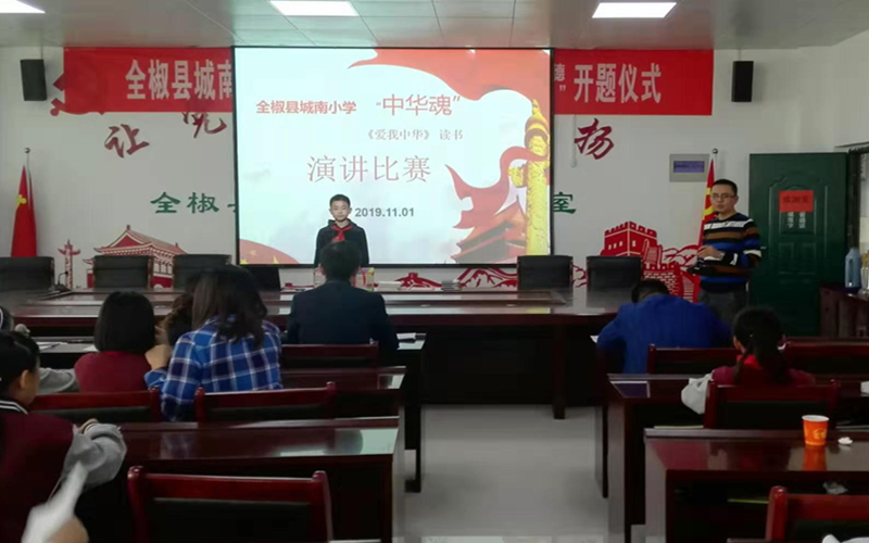 為進一步弘揚愛國主義精神,培養(yǎng)學生愛國主義情感,豐富學生校園文化生活,充分發(fā)揮新時代文明實踐點文化陣地作用,11月1日,全椒縣城南小學結(jié)合“中華魂”主題教育讀書活動,在城南小學新時代文明實踐點報告廳舉辦了“愛我中華——新中國成立70周年”演講比賽。