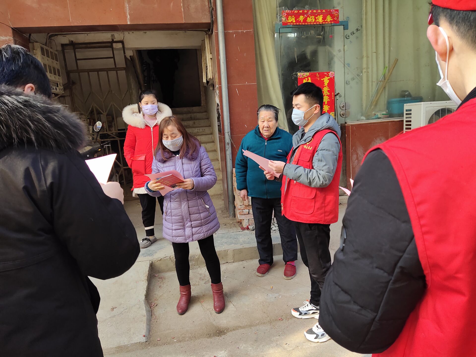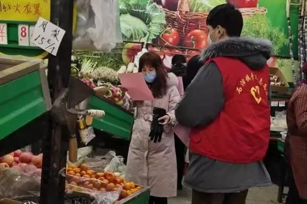除了黨員志愿者、醫(yī)務志愿者,還有一群群在默默戰(zhàn)斗的巾幗志愿者。面對疫情, 巾幗志愿者們哪里需要就到哪去,她們深入農(nóng)貿(mào)市場、商場超市、小區(qū)廣場散發(fā)宣傳單頁,開展防疫知識宣傳;到企業(yè)查看延期開工落實情況;提醒武漢返回人員進行體溫監(jiān)測、居家隔離;協(xié)助社區(qū)、村做好外來人員登記及檢查;及時勸導群眾取消婚喪嫁娶等聚集性活動。