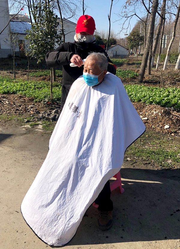 2月22日,全椒縣社區(qū)矯正對(duì)象在古河鎮(zhèn)免費(fèi)為老人理發(fā)。