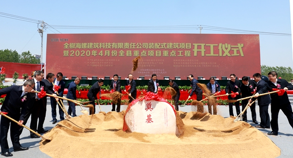 中安在線滁州訊 4月28日上午,全椒海螺建科公司裝配式建筑PC構(gòu)件工廠項目暨全縣4月份重點項目開工儀式在位于十字鎮(zhèn)化龍村的該公司項目現(xiàn)場舉行,市委書記張祥安,市委副書記、市長許繼偉,市委副書記朱誠、副市長許光友,海螺集團黨委書記、董事長高登榜,海螺水泥黨委書記、副董事長王建超,縣領(lǐng)導(dǎo)朱大綱、楊光、楊勇、董光林、張少華、史法勇、金義平、沈文琪、王燕等參加活動,楊光主持開工儀式。