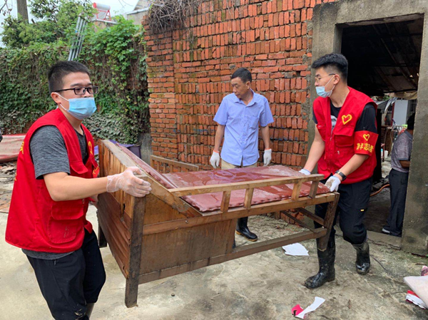 隨著水位下降,降雨停止,安置點(diǎn)的群眾紛紛回到家中清理衛(wèi)生。青年志愿者們又來(lái)到受災(zāi)群眾家中,幫助他們清掃垃圾、搬運(yùn)物品。