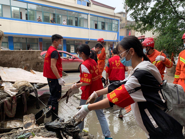 在后方:112人次青年志愿者分為6批,入駐災(zāi)情較重的古河鎮(zhèn),在古河中學(xué)安置點(diǎn)開(kāi)展了5920余小時(shí)的志愿服務(wù)。