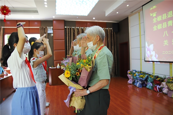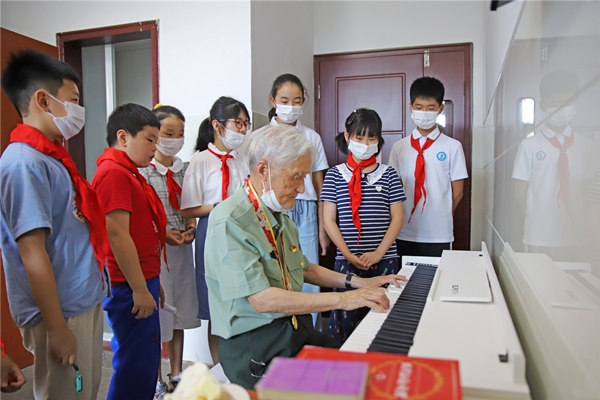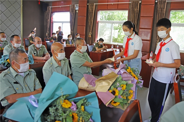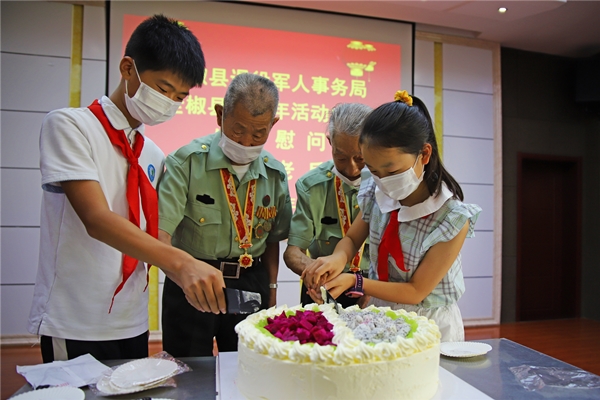 7月31日,全椒縣青少年學(xué)生校外活動(dòng)中心組織孩子們?cè)谕艘圮娙耸聞?wù)局工作人員的帶領(lǐng)下,走進(jìn)滁州市光榮院,為老戰(zhàn)士們表演節(jié)目,聽老戰(zhàn)士講戰(zhàn)斗故事,還跟老戰(zhàn)士們一起分享節(jié)日蛋糕,共迎“八一建軍節(jié)”。(禹強(qiáng)云 攝)