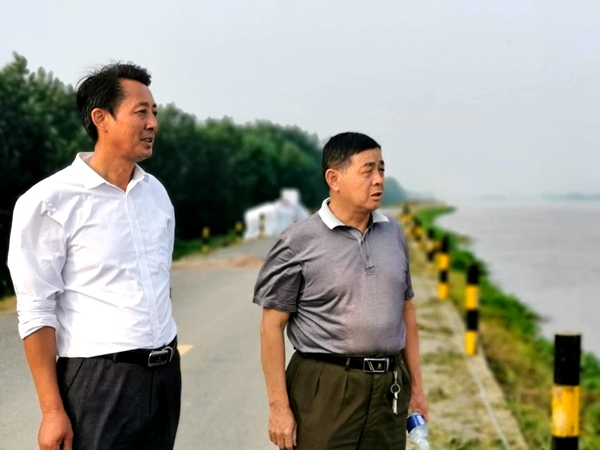 右一為徐仕斌在查看滁河大堤