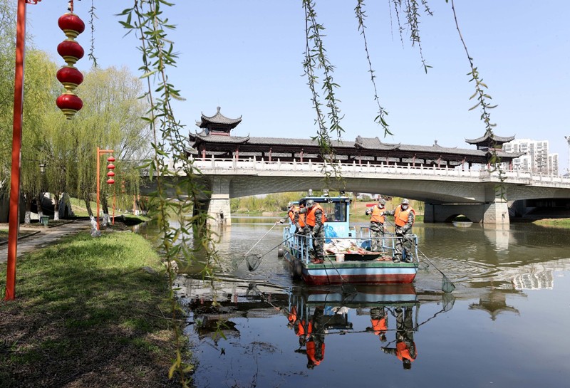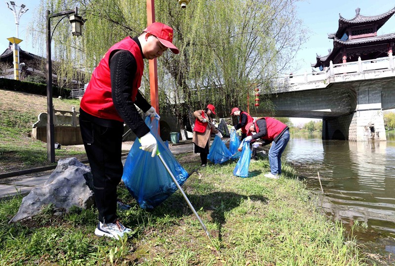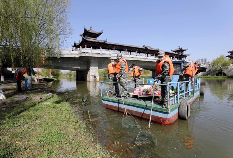 3月22日,全椒縣“河小青”志愿服務(wù)隊(duì)隊(duì)員清理河道內(nèi)雜物。當(dāng)日是“世界水日”,安徽省全椒縣“河小青”志愿服務(wù)隊(duì)來(lái)到襄河國(guó)家級(jí)水利風(fēng)景區(qū)進(jìn)行清潔工作,守護(hù)市民飲用水源,保障市民休閑場(chǎng)所干凈舒適。