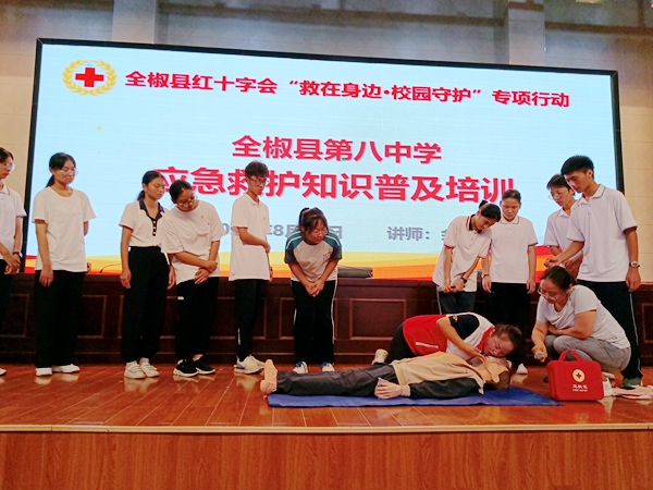 為了提高廣大師生防災避險和自救互救能力,切實保護師生生命安全和身體健康。8月10日—11日,全椒縣紅十字會組織志愿者老師深入滁州儒林外國語學校、全椒第八中學為高一新生開展“救在身 校園守護”紅十字應急救護培訓活動。