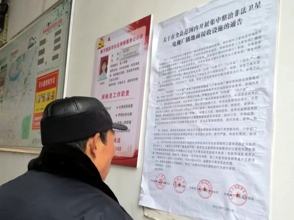 為加強(qiáng)對(duì)衛(wèi)星地面接收設(shè)施的管理,促進(jìn)精神文明建設(shè),維護(hù)轄區(qū)內(nèi)的政治安全、信息安全、文化安全,營(yíng)造安全、健康、有序的社會(huì)文化環(huán)境,12月25日,新華社區(qū)掃黃打非工作站組織人員開(kāi)展非法衛(wèi)星電視接收設(shè)施專(zhuān)項(xiàng)檢查行動(dòng),進(jìn)一步加強(qiáng)對(duì)衛(wèi)星地面接收設(shè)施管理,打擊非法銷(xiāo)售、安裝、使用衛(wèi)星地面接收設(shè)施行為。