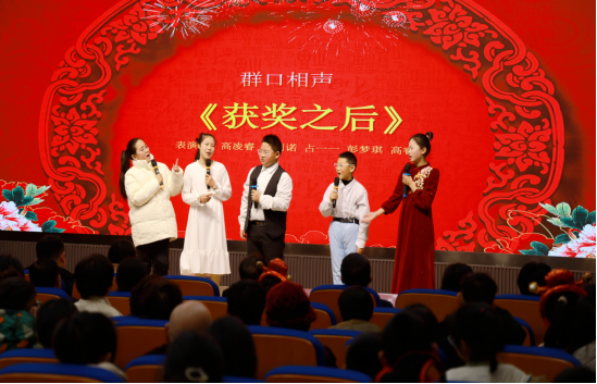兒童群口相聲《獲獎(jiǎng)之后》、童聲合唱《小孩子大夢(mèng)想》、古箏《春到湘江》等節(jié)目博得現(xiàn)場(chǎng)觀眾陣陣喝彩,合唱《我驕傲我是中國(guó)人》激昂的歌聲將年會(huì)推向高潮。