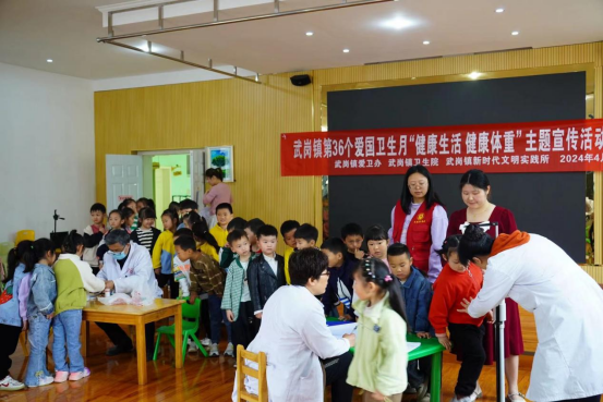 聯(lián)合開展校園體檢。武崗鎮(zhèn)愛衛(wèi)辦聯(lián)合武崗鎮(zhèn)衛(wèi)生院、新時(shí)代文明實(shí)踐所為武崗中心幼兒園的幼兒們提供義診、體檢服務(wù)?;顒?dòng)現(xiàn)場由6名醫(yī)生和3名志愿者,為全園一百余名幼兒提供視力、身高、體重測量和血液檢測等體檢項(xiàng)目,同時(shí)利用宣傳視頻,為孩子們普及健康飲食知識(shí),號(hào)召學(xué)校和學(xué)生均衡飲食,適度鍛煉。