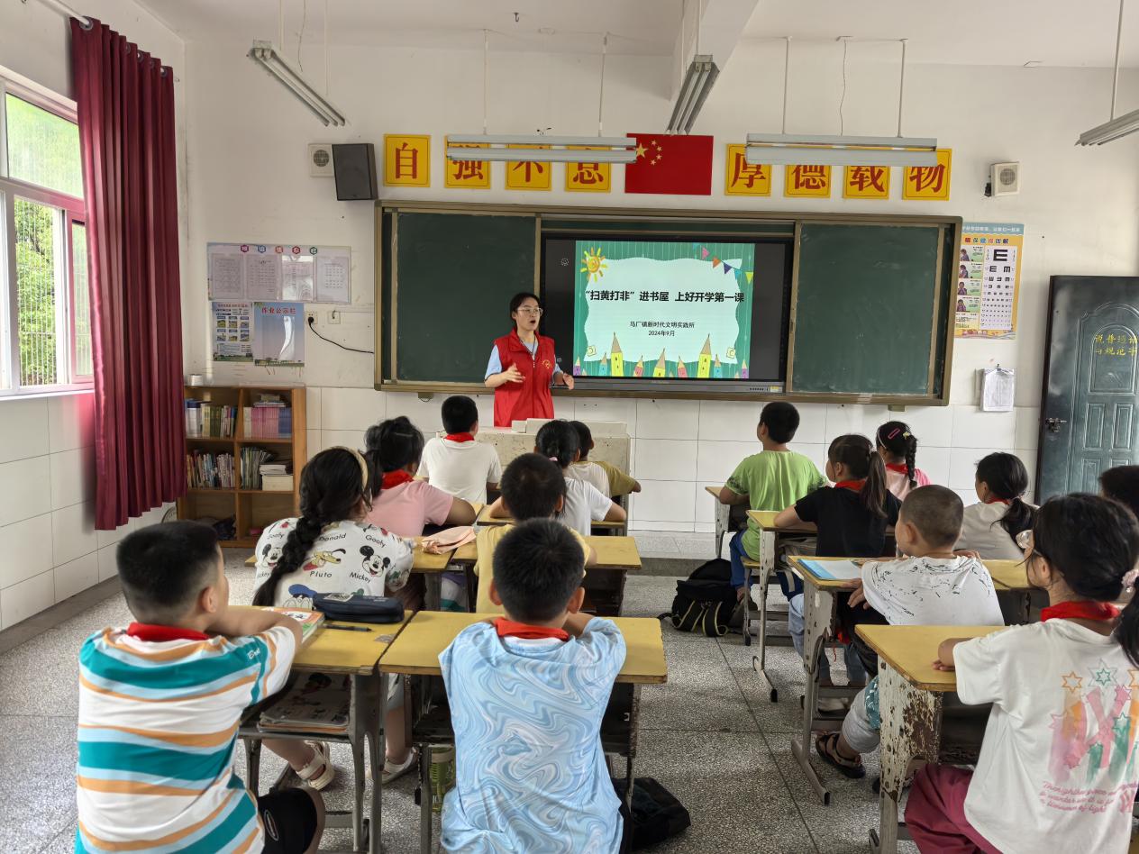 開展一次主題班會(huì)。開學(xué)的第一天,馬廠鎮(zhèn)小學(xué)組織開展“掃黃打非”主題班會(huì),老師通過課堂教育、舉手問答、互動(dòng)游戲等形式,帶領(lǐng)同學(xué)們深入學(xué)習(xí)“掃黃打非”“綠色閱讀”“文明上網(wǎng)”等內(nèi)容,引導(dǎo)廣大學(xué)生認(rèn)識(shí)“掃黃打非”的重要意義,全面提升學(xué)生們對(duì)“掃黃打非”信息的鑒別能力和自我保護(hù)能力,同時(shí)大力提倡同學(xué)們綠色閱讀、尊重和保護(hù)知識(shí)產(chǎn)權(quán)、遠(yuǎn)離和抵制有害出版物和網(wǎng)絡(luò)有害信息,營(yíng)造護(hù)助未成年人健康成長(zhǎng)的濃厚氛圍。