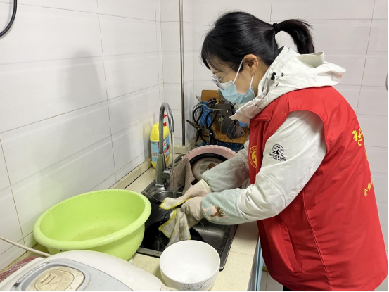城南社區(qū)志愿者團隊一起走進了社區(qū)里的幾戶獨居老人家,為他們帶去了一絲節(jié)日的溫馨。首先,志愿者為老人們進行了徹底的大掃除,為獨居老人清掃地面、洗凈碗筷、整理雜物,讓老人家里煥然一新,為老人整理出干凈整潔、令人舒心的居住環(huán)境。