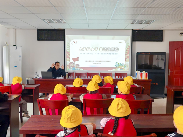 4月17日上午,二郎口鎮(zhèn)文化站內(nèi),一場(chǎng)別開生面的非遺傳承活動(dòng)在此舉行。二郎口鎮(zhèn)中心幼兒園師生、非遺代表性傳承人和文化志愿者20多人走進(jìn)文化站,為小朋友們帶來了“百米長龍”與“門歌”兩項(xiàng)非物質(zhì)文化遺產(chǎn)的精彩講解,并播放相關(guān)視頻,讓非遺在孩子們心中種下傳承的種子。